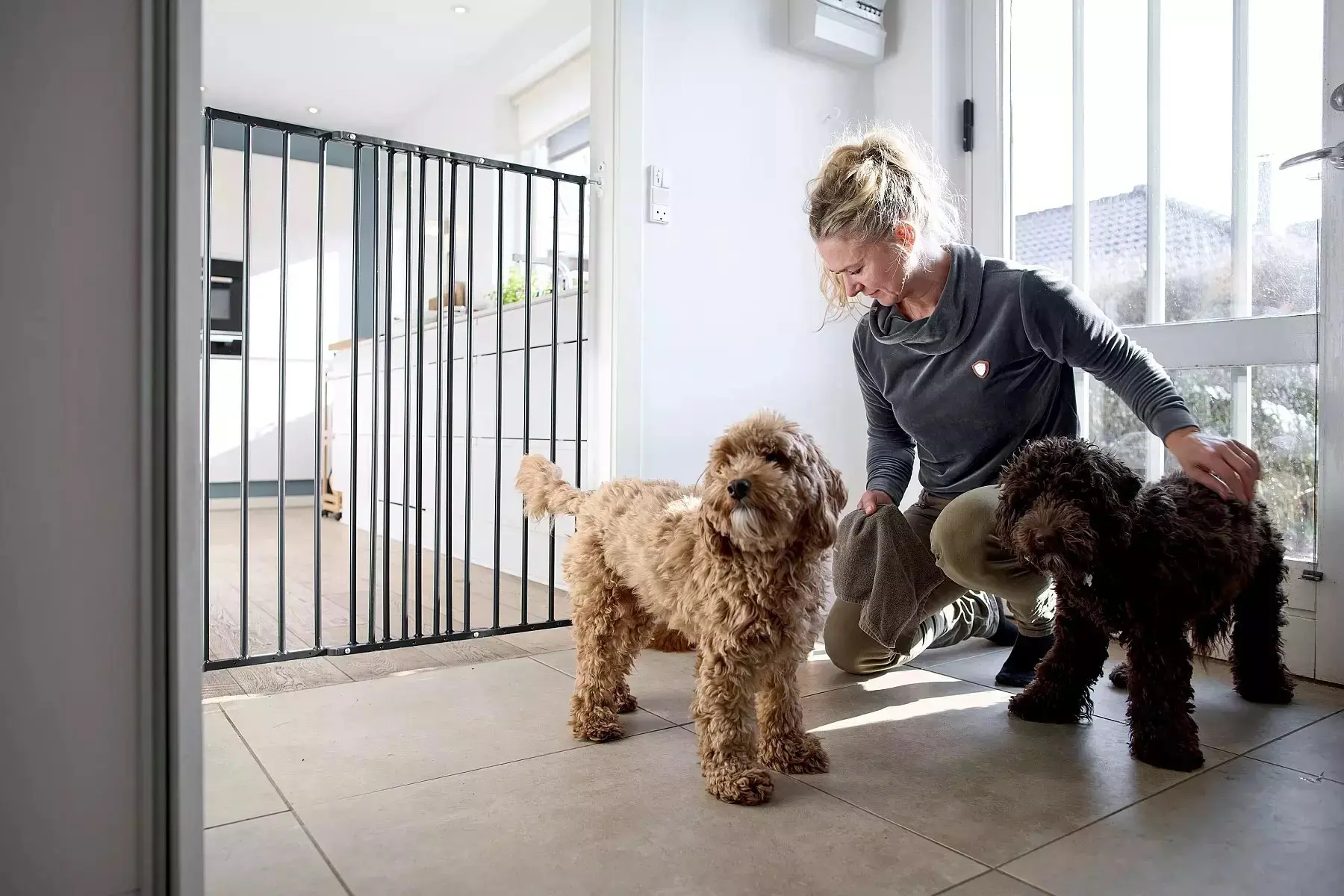 - Can be quickly unfastened, so you can easily remove the gate, e.g. to vacuum up dog hair.