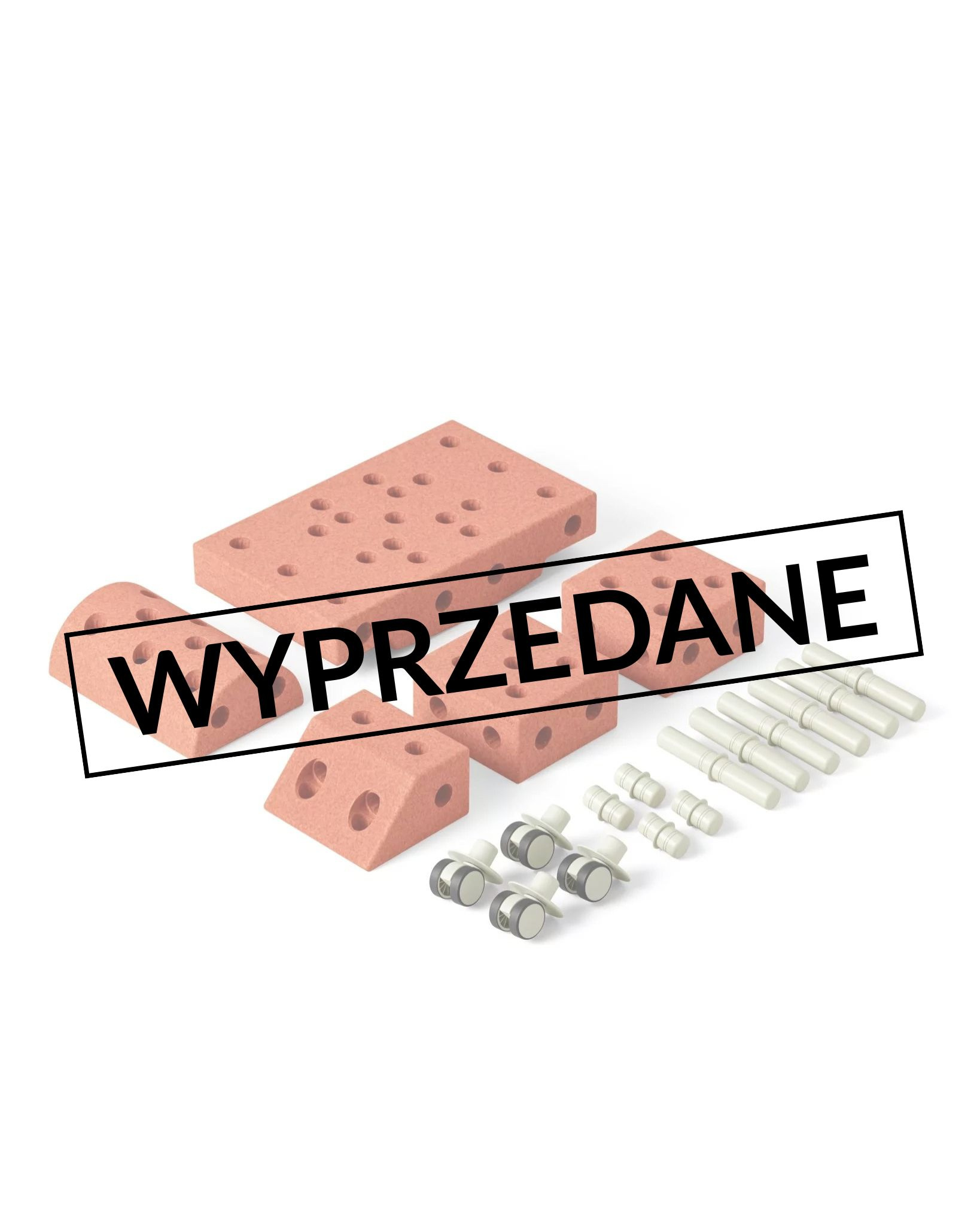 The set includes: 20 pcs (5x Blocks, 10x Pegs, 4x Swirly Wheels, 1x Inspiration Booklet)