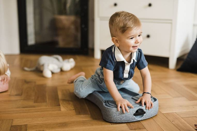 A board on wheels! By removing the top of the vehicle, older children can sit or lie down on the My First wheeled platform and push themselves with their hands or legs. Such play supports motor development, creativity and body awareness.
