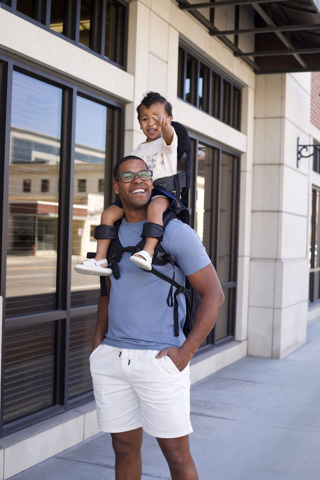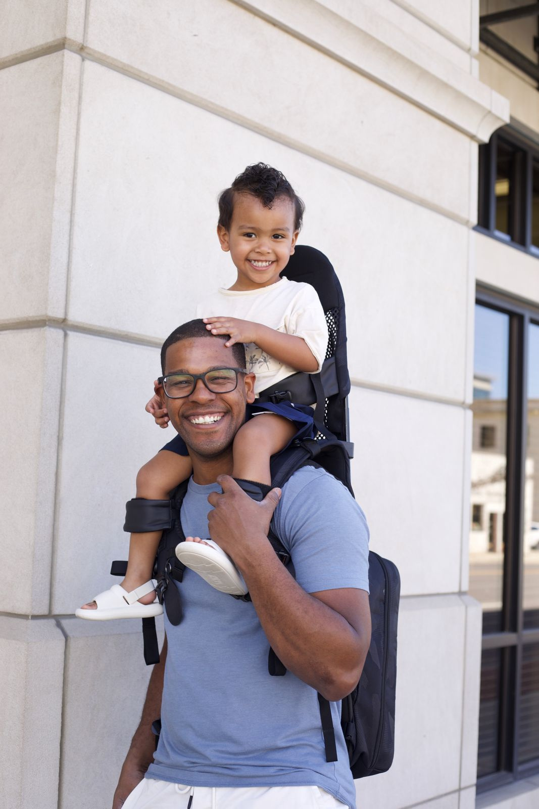 The Minimeis is anaward winning shoulder carrier. Scandinavian designed by Norwegian dads. Made with active, urban and adventurous families in mind. We created the MiniMeis to make it fun, easy, and safe to go on adventures with your child.
