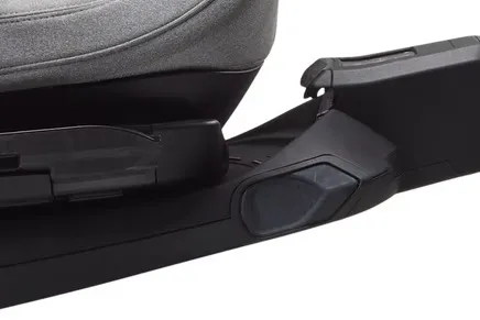 The hidden button that releases the seat from the base is locked while driving, preventing accidental misuse