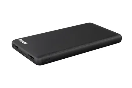 The air purifier cover is powered by a detachable power bank, such as the Thule - Power bank 10k (sold separately) or any compatible model, operating for up to 32 hours on a full charge