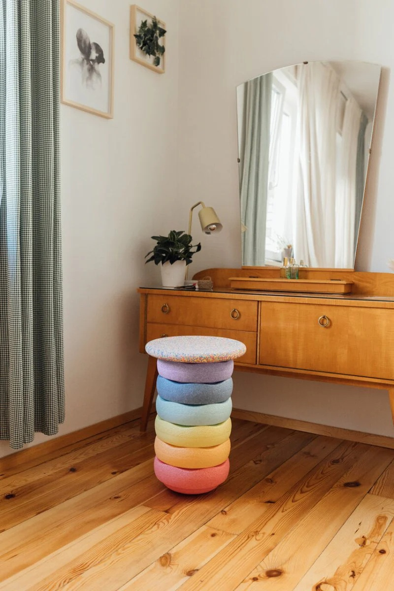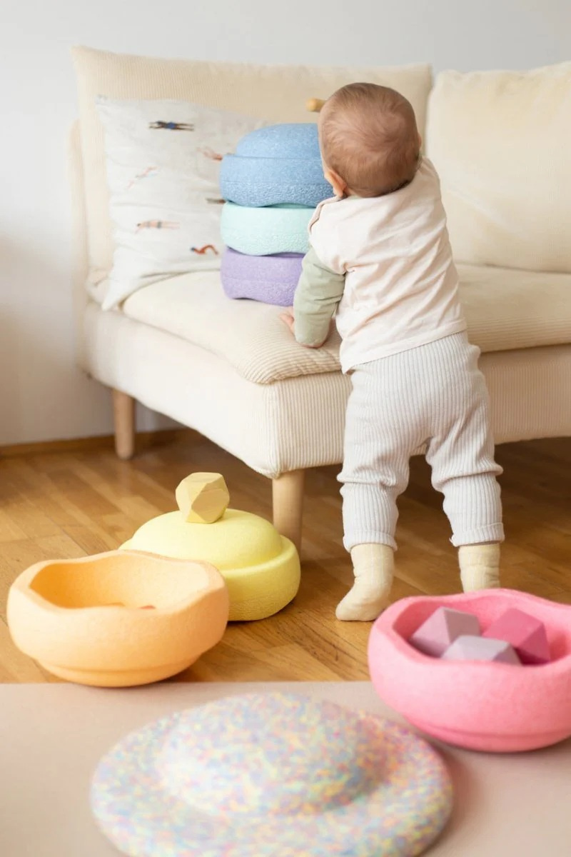 Stand on inverted blocks or a confetti-colored disc and practice your balance! Your child can practice balance and body balancing, which greatly supports his or her motor coordination, strengthens muscles and stimulates the senses.