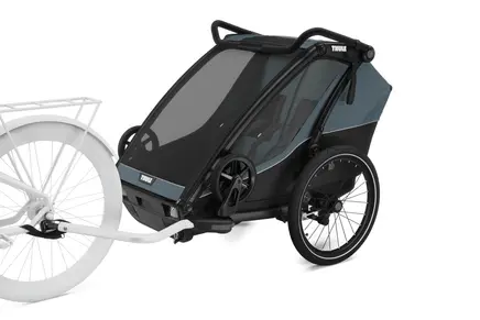 - THULE Chariot Cab Dark Slate double children's bicycle trailer. The shock absorption of the THULE Cab child's trailer ensures comfort and safety. Thule Cab children's trailers have a tilting backrest, a walking bicycle set and an XL luggage rack.