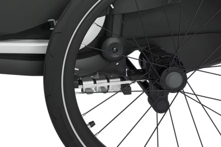 Adjustable spring suspension ensures a smooth and comfortable ride and allows you to adjust the degree of depreciation of the trailer to the needs of a growing child or the transport of heavier items