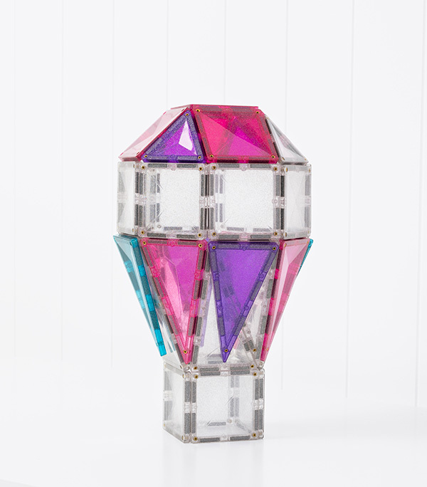Add sparkle to your play with the Connetix 56 Piece Glitter Unicorn Pack. Featuring enchanting colours – pink, yellow, teal and purple – this set includes various shapes: squares, hexagons, rectangles, triangles and trapezoids. Each tile is filled with ultra-fine glitter for dazzling light reflections. Perfect for building unicorns, castles, snow globes and other imaginative creations.