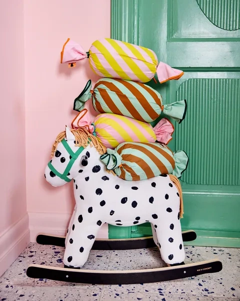 - A delightful candy-shaped cushion inspired by Pippi Longstocking. Made from organic cotton with recycled filling (OEKO-TEX certified). Perfect as a decoration and a soft headrest. The removable cover makes it easy to clean.