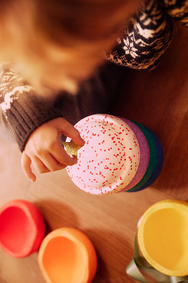 In this limited winter edition, the classic 6-piece Mini Rainbow Classic set has been enhanced with a seventh, unique Mini stone in the special Blush & Red colour. As with other products in this series, the "Blush" component is made from 90% recycled material, combining joyful, colourful play with a sustainable approach.