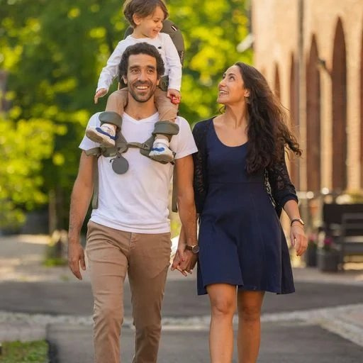 For our smallest users (approx. 6 – 10 months), MiniMeis has an optional shoulder strap that can serve as additional support and security. Thanks to this belt, the child is secured with a patented 9-point harness. Find out more in our beginner's guide. MiniMeis G4 is equipped with a patented weight distribution system that allows the child to sit on a raised support, avoiding direct pressure on the adult's neck, shoulders and collarbone. The only concern for parents is to be aware of obstructions above the head, which would also be the case if carrying the baby on the shoulders without the MiniMeis.