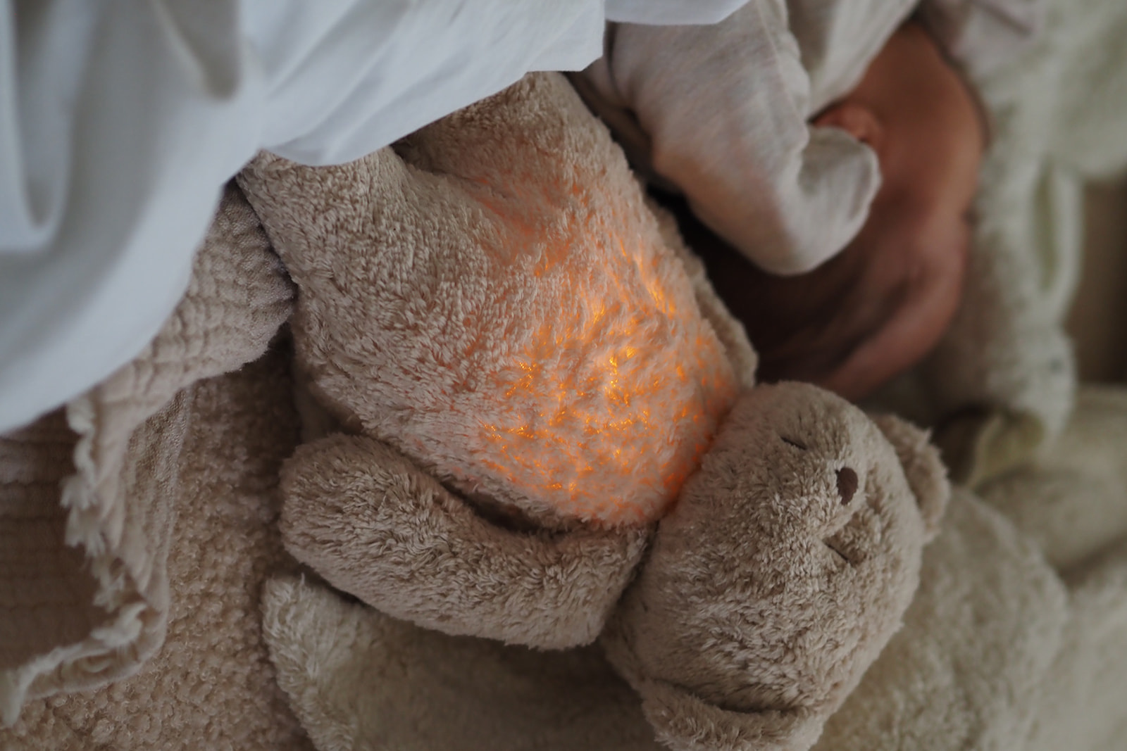 The Moonie plush combines softness with modern soothing functions. Equipped with pink noise, authentic nature sounds and gentle light, it helps babies relax and fall asleep. A safe and practical solution supporting the daily bedtime routine.