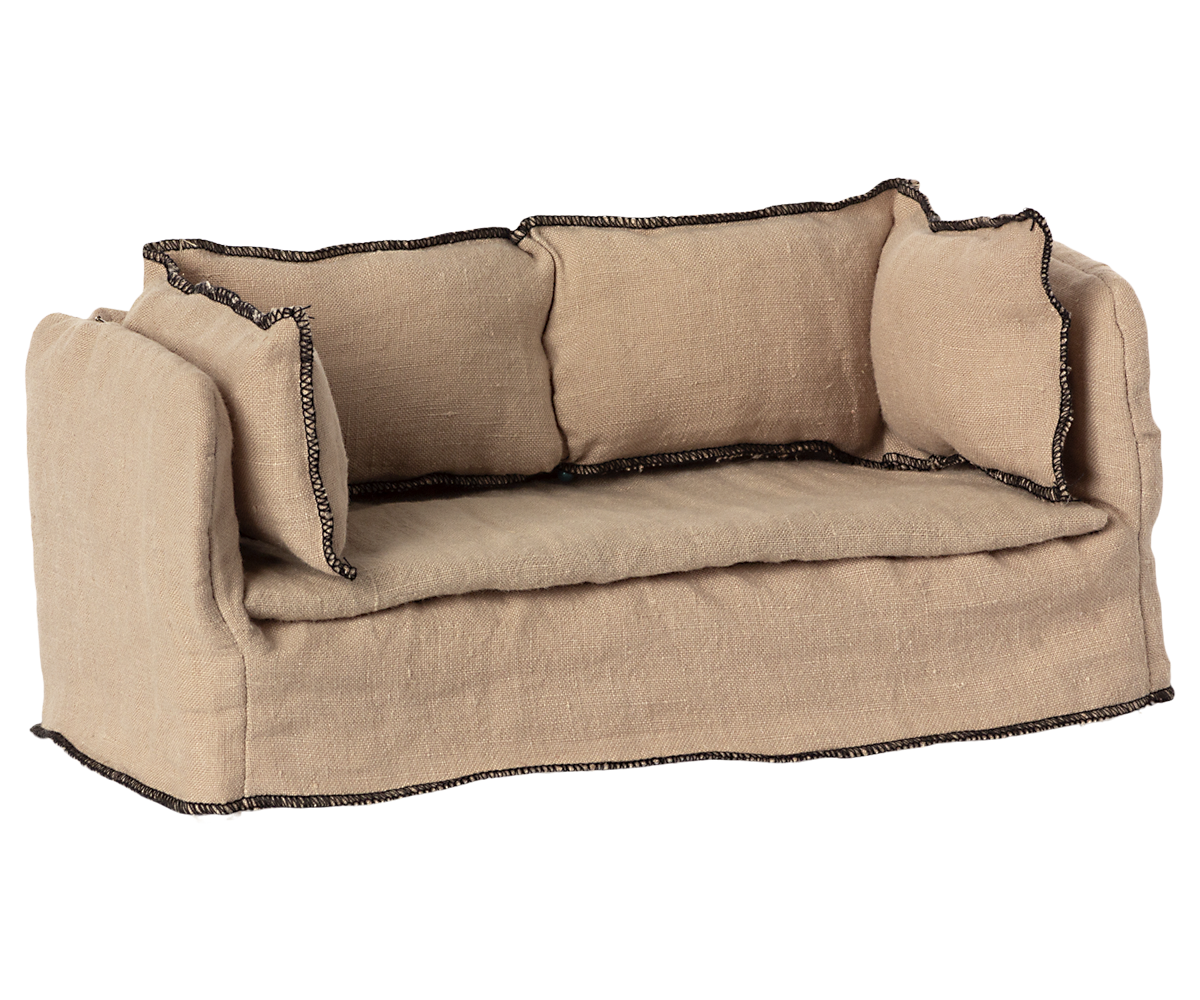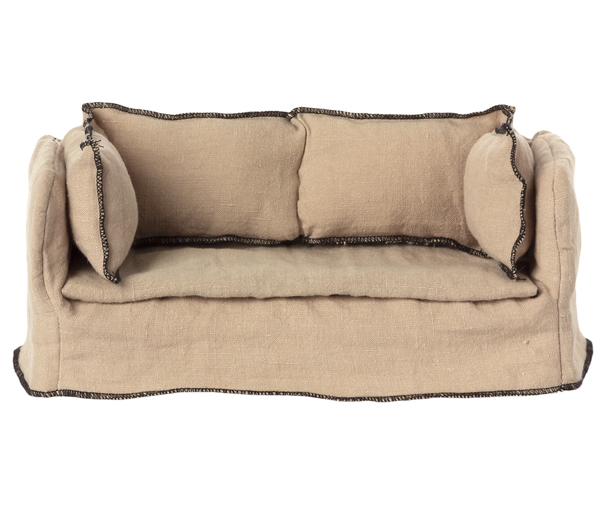 Give your mouse or doll a moment of rest on this beautiful sofa. The couch features an internal wooden frame and a soft cover made from high-quality linen fabric.