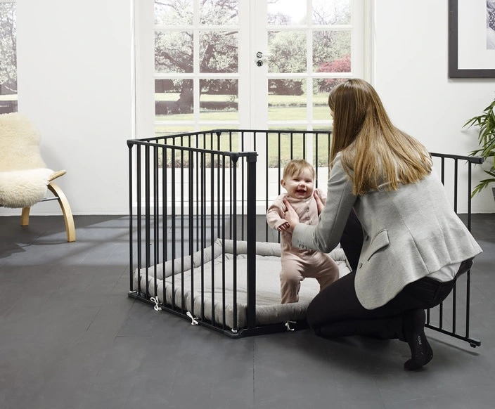 The Park A Kid playpen can easily be turned into a safety gate. When the child is older, it can be transformed into a safety gate or a fireplace cover