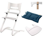 LEANDER - CLASSIC ™ high chair, white + safety bar, tray, Dark Blue pillow - SET